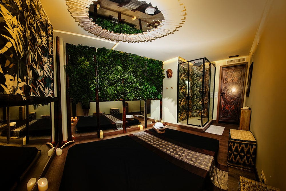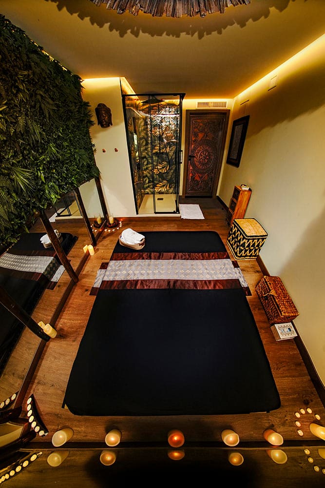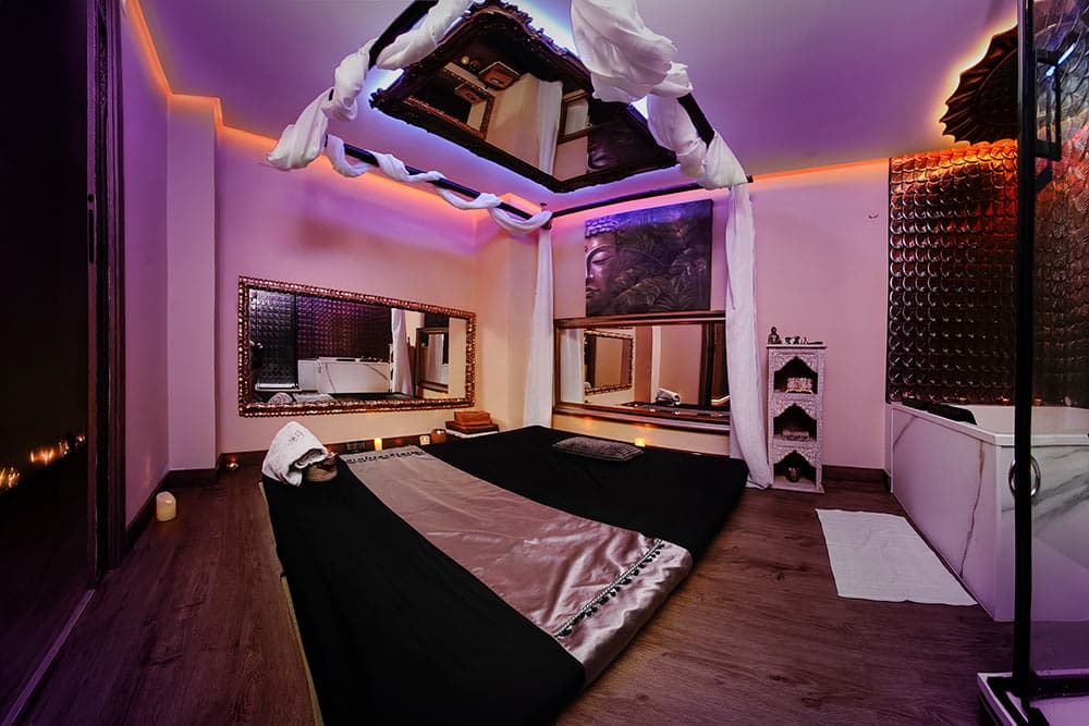 Las manos expertas de la terapeuta explorarán cada rincón de tu cuerpo, despertando tus deseos más profundos. La luz de las velas, el espejo en el techo y los pétalos de rosa que te rodean te invitan a entregarte por completo.